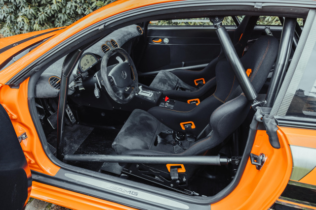 Auch der Innenraum ist vollständig auf den Rennsport ausgerichtet: feuerfeste Schalensitze mit Gurten, ein vollständiger Überrollkäfig, ein Alcantara-bezogenes Armaturenbrett, ein Digitaldisplay und ein einzigartiges Lenkrad sorgen für das ultimative Motorsport-Erlebnis.