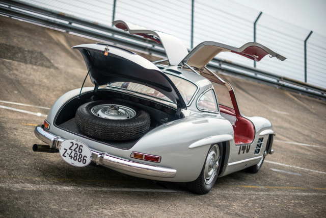 Der originalen Datenkarte zur Folge wurde das Fahrzeug mit der Fahrgestellnummer 5500640 an die Sportabteilung in Untertürkheim ausgeliefert, wo es mit zahlreichen Rennwagen-Features ausgestattet wurde. Die Upgrades beinhalteten einen speziellen NSL-Motor mit überarbeiteter Nockenwelle und mechanischer Bosch-Einspritzanlage – der gut für 240 PS war. Dazu gab es Rudge Knock-Off Räder, Renn-Auspuff, größeren Öl-Tank und ein einstellbares Fahrwerk sowie eine auf 3,48:1 geänderte Hinterachsübersetzung.