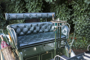 Der Benz Patentwagen "Ideal" des Jahres 1900 verfügt über einen riemen- und kettengesteuerten Achsantrieb mit zwischengeschaltetem mechanischem Getriebe (drei Vorwärtsgänge und ein Rückwärtsgang). Die 4,5 PS sind für eine Beschleunigung auf ca. 35 km/h gut. Für ordentlichen Fahrkomfort bürgt der Mix aus voll-elliptischen Federn an der Vorderachse und halb-elliptischen Federn an der Hinterachse.