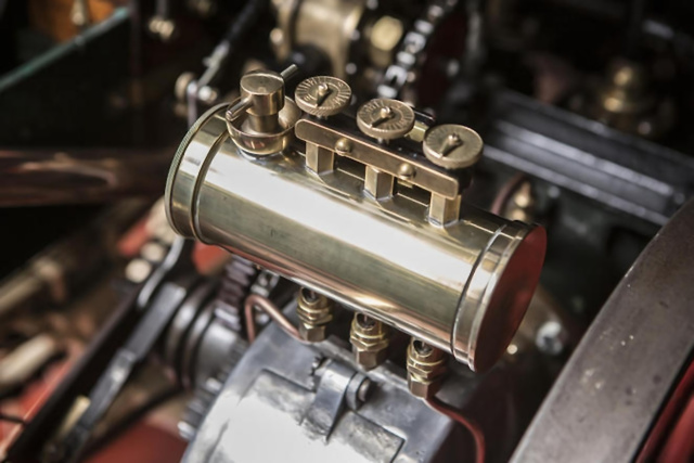 Doch trotz der längeren Standzeit erwies der Benz sich noch immer in einem ordentlichen Erhaltungszustand. Daher stellte sich im Verlauf der seinerzeit verordneten Komplettrestauration heraus, dass viele Originalteile nach wie vor verwendet werden konnten. So kann der Benz stolz originale Bauteile wie den Oberflächenverdampfer oder den ebenso authentischen Kühler mit seiner Hersteller-Plakette der französischen Marke „Grouvelle et Arquembourg“ vorweisen.