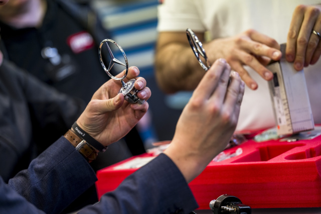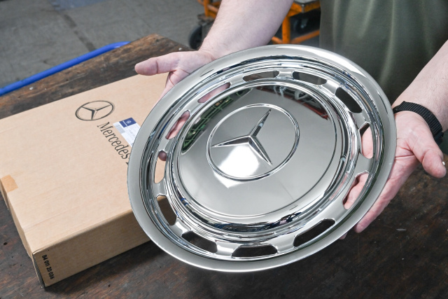 Dabei ist der aktuelle Fundus an historischen Ersatzteilen ist größer und tiefer als gedacht, denn unter den 160.000 Teilepositionen im gigantischen Ersatzteilcenter in Germersheim befinden sich zum Beispiel gleich mehrere Öler des historischen Benz Patent-Motorwagens von 1886. Wer so ein Fahrzeug besitzt, kann das Ersatzteil kurzfristig bekommen. Zugegeben – deutlich beliebter sind die Mercedes-Sterne, die im aktuellen Klassikangebot in über 40 verschiedenen Ausführungen zu bekommen sind. Pro Jahr werden allein davon 20.000 Exemplare verkauft. Darf es etwas größer sein? Das aktuell größte verfügbare Ersatzteil ist der hintere Kotflügel der Maybach-Baureihe vom Typ 240 mit einer Länge von stattlichen 237 Zentimetern.