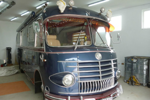 Hier präsentieren wir widerum ein einzigartiges Wohnmobil auf Basis eines 1955 Mercedes OP311 Salamander Bus. Außen ist der OP311 ein Oldtimer und innen exclusiv und elegant. Das Wohnmobil besitzt eine große Sitzecke, ein französisches Bett (1,50m x 2,10m), eine beleuchtete Markise, elektr. Trittstufe, Dachfenster mit Plissee's, Seitenfenster mit Duorollos sowie Fliegengitter mit Abdunklungsrollo, Fahrerhaus mit Vorhängen. Dazu verspricht der Verkäufer weitere Extras wie z.B. hydraulische Hubstützen, 2x Klima, viele LEDs, indirekte Beleuchtung usw.