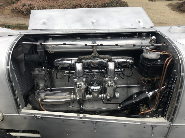 Die brachiale Kraft des aufgeladenen 7,1-Liter-Sechszylinders ist bereits nach ein paar Metern am Steuer des neu aufgebauten Mercedes SSKL Stromlinienkarosse zu spüren. Der kurze erste Gang ist nur zum Anrollen gedacht, doch bereits hier schiebt das Triebwerk mächtig an. Hat man mit gefühlvollen Kupplungsfuß den zweiten Gang der synchronisierten ZF-Viergangschaltung eingelegt, donnert der Kompressor seine mächtige Akustik aus dem rechts herausragenden Endrohr. Ohne Ohrenstöpsel wäre ein Hörschaden wohl unvermeidlich, denn der unterarmdicke Auspuff reckt sich selbstbewusst in rund einem Meter Höhe aus der rechten Motorklappe.
