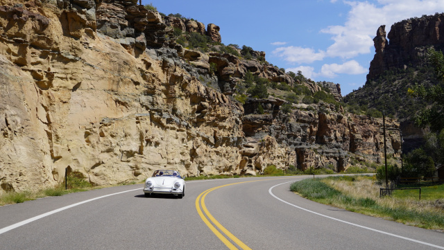 Die Colorado Grand ist die perfekte Umgebung und genau der richtige Ort, um seinen Sport- oder Tourenwagen einfach laufen zu lassen. „You will have enough possibility to stretch your legs“, wie Piney, einer Strate Trooper, entspannt erwähnt. Viele Fahrzeuge im Feld tragen den Stern auf der Haube, denn gerade der Mercedes 300 SL erfreut sich auf der Colorado Grand seit Jahren einer besonders großen Beliebtheit bei den Teilnehmern. Wenn es lange Bergaufpassagen hat, ist der offene 300er eine ideale Besetzung, um die 215 PS auszukosten und die Aussicht zu genießen. Doch auch Aston Martin DB4 GT, Porsche 356, Lancia Aurelia oder Ferrari 250 SWB sorgen für sonoren Klang und flotte Tempi im Feld. Einige Teilnehmer sind mit echten Rennmaschinen aus der Historie dabei. Schamlos brüllen sich hoch dekorierte Renner wie Ferrari Testa Rossa 59, Maserati Tipo oder Jaguar C-Type durch die Canyons und die Schluchten eines der schönsten Bundesstaaten der USA. Und wo bekommt man in freier Wildbahn schon einen 1928er Bentlry 4 ½ Litre, 1958er Scarab MK II oder einen 1955er Kurtis 500 KK zu sehen? Das ein oder andere Fahrzeug, dass auf der Colorado Grand seine motorsportlichen Fähigkeiten zeigt, war auch schon auf dem Concours von Pebble Beach zu bestaunen. Viele Klassiker im Feld sind millionenschwer.