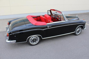 Beim Anblick dieses taufrisch wirkenden Mercedes 220S Cabriolets der Baureihe W180-II reibt sich so mancher verdutzt die Augen. Dieser Benz soll wirklich schon 57 Jahre alt sein? Denn fast könnte man angesichts des tadellosen Zustands glauben, dass der Mercedes soeben erst aus der Montage-Halle gerollt sei. Tatsächlich verdankt sich die phantastische Präsens sowohl einer sorgfältigen Pflege als auch einer umfassenden Restauration durch die Familie, in dessen Besitz der Mercedes nun schon seit 1958 ist.