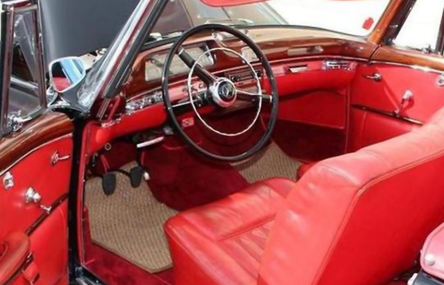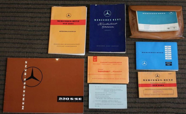 Lohn der Mühe: Ein Classic-Data Gutachten aus dem Jahr 2012 bescheinigt den Zustand “1“ und bestätigt die originale Kombination von Fahrgestell und Motor. Komplett sind auch die Papiere und Unterlagen. Da der Wagen stets im Kreis der Familie blieb, sind alle Unterlagen wie Betriebsanleitung, Verkaufsprospekt, Scheckheft und Garantieheft sowie die Betriebsanleitung für das Becker-Radio „Mexico“ im Original erhalten. Na, Lust bekommen auf eine Zeitreise zurück in die Fünfziger Jahre? Dann braucht es nur noch ca. 150.000 Euro! Denn soviel Geld müsste das Konto schon hergeben, wenn man ein Mercedes 220S Cabriolet in dieser Güte erwerben möchte.
