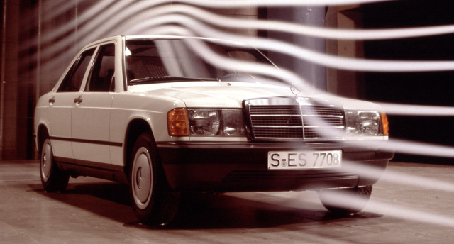 Bei der Fahrdynamik sollte der Mercedes 190 Maßstäbe setzen. Frontantrieb war bei dem 4,42 Meter langen Fahrzeug keine Option, also auch keine quereingebauten Motoren. Damit waren die Platzverhältnisse nicht opulent. Was manchen potenziellen Käufern sauer aufstieß, die auch im Fond Mercedes-würdig residieren wollten. Der Innenraum setzte mit den geraden Linien und wenigen Luxuselementen auf eine zeitgemäße Sachlichkeit. Das keilförmige Design stammte von Bruno Sacco, der das Spiel mit trapezförmigen Kanten vom futuristischen Prototypen C 111 unter dem Namen „Diamantschliff“ in die Kompaktklasse transferierte. Das Resultat war ein guter Cw-Wert von 0,33, der zu Zeiten, bei denen das Gespenst der Ölkrise allgegenwärtig war, ein stichhaltiges Argument darstellte. Genauso wie der Leichtbau, der bei jedem Treffen der Entwickler ganz weit oben auf der Agenda stand. Die Mühen haben sich gelohnt. Der Mercedes 190 wog nur rund 1.100 Kilogramm. Die Techniker nahmen Gewicht aus dem Auto, wo es nur möglich war. Wie detailbesessen die Ingenieure dieser Aufgabe nachgingen, zeigt die Tatsache, dass sie einen Öleinfüll-Verschlussdeckel aus Kunststoff verwendeten, was 41 Gramm aus dem Auto nahm.