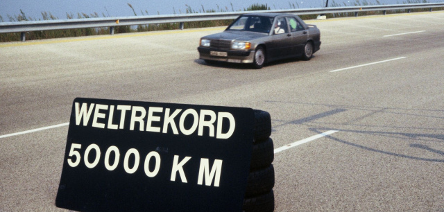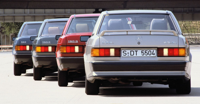 Es folgten PS-Spritzen wie beim Mercedes 190E 2.3-16 V auf 136 kW / 185 PS oder ein Flüsterdiesel mit dem 190D. Um die Qualität des neuen Mitglieds der Mercedes Pkw-Familie unter Beweis zu stellen, ließ man einen 190 E 2.3-16 auf der Hochgeschwindigkeitsteststrecke in Nardo in der Rekordzeit von 201 Stunden, 39 Minuten und 43 Sekunden eine Distanz von 50.000 Kilometern zurücklegen. Prestigeträchtiger war das Tourenwagenrennen zur Eröffnung der neuen GP-Strecke des Nürburgrings 1984. Am Steuer der Mercedes-Boliden saßen Rennsportlegenden wie Niki Lauda, Alain Prost, Jack Brabham, die ehemaligen Titelträger Phil Hill, John Surtees, Denny Hulme, James Hunt, Jody Scheckter, die ehemaligen Mercedes-Werksfahrer Hans Herrmann und Stirling Moss sowie ein junger Brasilianer namens Ayrton Senna, der das Rennen auch gewann.