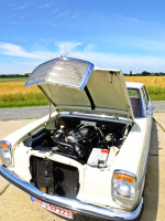 Einen kleinen Schönheitsfehler gab es bei dem Mercedes Strichacht übrigens doch. So sparsam der Erstbesitzer seinen Mercedes-Benz einsetzte, so kostengünstig meinte er als Meister der Farbtöpfe eine kleine Schönheitsreparatur eigenhändig ausführen zu können. Nach einem Parkrempler waren Lackierarbeiten am Strichacht notwendig geworden. Doch anstatt den Schaden von einem Lackierbetrieb beheben zu lassen, griff der Malermeister selbst zur Farbrolle. Tja, zwei linke Hände und ein dickes Lammfell muss man haben, wenn es mit der farblichen Ausbesserung unterhalb der Zierleisten des Mercedes nicht hundertprozentig klappen soll. Das durfte natürlich nicht so bleiben. Und also ließ Rolf Luhmann den Makel von einem befreundeten Lackierer in seinem Betrieb mit der Maßgabe, möglichst viel Originallack zu erhalten, fachmännisch beseitigen. Das Ergebnis sieht sehr gelungen aus und komplettiert das Glück des MIB mit seinem wunderschönen Strichacht. Mal ehrlich, Nicht viele können zu so einem herrlichen W115 mein sagen!