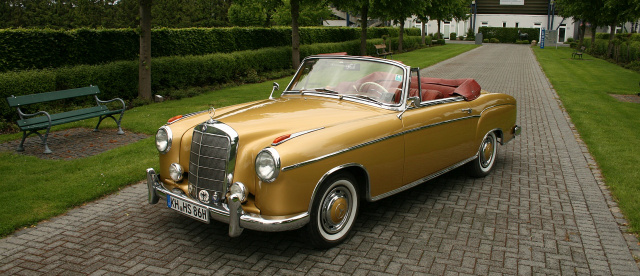 Insgesamt wurden nur 1.112 Cabriolets zwischen Juli 1958 und November 1960 von dieser Baureihe produziert. Dank einer Bosch-Kraftstoffeinspritzung leistete der 2,2 Liter große Sechszylinder 120 PS. Das Ponton Cabriolet kommt auf eine Höchstgeschwindigkeit von 170 km/h. Zugelassen wurde diese „Open-Air S-Klasse“ im Mai 1960.