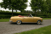 Aber: Von der eigentlichen Ponton-Karosse der Limousine wurde für das Cabrio nur die Frontpartie übernommen. Das schicke Heck wurde für das Cabriolet extra neu angefertigt – was natürlich nicht gerade kostengünstig war. Um die eleganten Linien des Hecks beizubehalten, verschwand das Dach beinahe komplett im Hinterraum. So sieht der goldene, nun 58 Jahre alte Oldtimer auch heutzutage immernoch unglaublich stimmig aus. Ja, fast zeitlos...