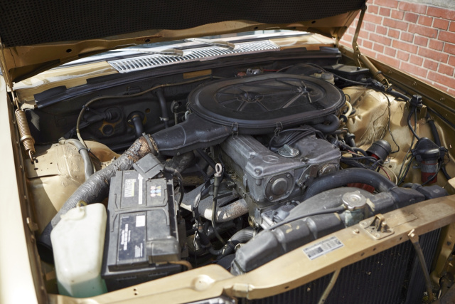 Die Lackierung im Farbton Gold trug der 280er übrigens schon ab Werk. Der Vorbesitzer hatte zwar schon Teile nachlackiert, aber stets im goldenen Originalfarbton. Absolut überzeugend präsentiert sich der Innenraum der S-Klasse. Die Sitze mit typischem 70er-Jahre Karomuster in gedeckten Grün- und Beigetönen befinden sich in beiden Sitzreihen in einwandfreiem Zustand. Auch die Innenverkleidungen sind top erhalten. Was Halil allerdings neu kaufte, war ein 19-teiliger Teppichsatz. Ein Reprosatz, den er für knapp 280 Euro bei eBay erstand.