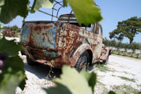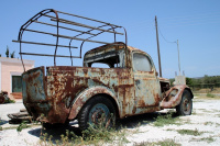 Unser Interesse am ausfindig gemachten Objekt war groß, besonders welcher Motor sich unter dem kümmerlichen Blech verbirgt, aber nichts ging oder bewegte sich. Und bevor alles auseinander fällt, sich dann rein zufällig ein griechischer Plantagenbesitzer beschwert, der sich zudem als vermeintlicher Besitzer ausgibt und uns in Bedrängnis bringen könnte, da hatten wir unsere intensive Inspektionsidee schnell verworfen, jener Stress sollte uns erspart bleiben.