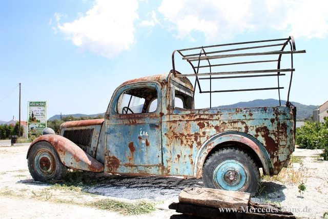 Altes edles Blech unter der brennenden Sonne Griechenlands verbergen sich teils wahre Mercedes Schätze. Letztendlich ausschlaggebend für eine Reise nach Griechenland war der Tip eines Freundes, welcher auf Rhodos einen sehr seltenen Mercedes Pick Up entdeckte. Anhand eines Fotos stellte sich heraus, es muss sich dabei um ein W136 Modell aus der 170V Serie handeln. Wir wollten darüber mehr erfahren, auf nach Rhodos und das Wrack ausfindig machen!