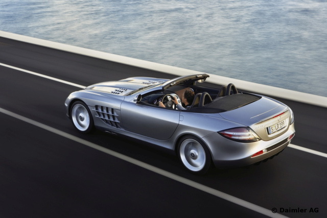 Mercedes-Benz bot den Supersportwagen SLR McLaren ab September 2007 auch als Roadster an. Speziell dafür wurde die aufwendige Carbontechnik des Monocoque-Chassis weiterentwickelt. Das Ergebnis waren ein geringes Gewicht, vorbildliche Energieabsorption und damit sehr hohe Insassensicherheit sowie eine bislang bei offenen Fahrzeugen nicht erreichte Torsionssteifigkeit. Das voll versenkbare Stoffverdeck war hochgeschwindigkeitstauglich und in drei verschiedenen Farben erhältlich. Es öffnete und schloss in weniger als 10 Sekunden halbautomatisch und vereinte damit Komfortwünsche mit dem puristischen Charakter des Roadsters. Zum Öffnen musste es lediglich im Frontscheibenrahmen entriegelt und kurz angehoben werden, danach faltete es sich elektrisch. Da im vorderen Teil des Dachs eine Aluminiumkappe integriert war, schloss es das abgelegte Verdeck elegant nach oben ab. Für hohe Sicherheit sorgten einzigartige Carbon-Crashstrukturen, mit Stahl verstärkte A‑Säulen sowie zwei feststehende Überrollbügel. Unterhaltungen waren dank günstiger Aeroakustik bei offenem Fahren auch noch bei weit mehr als 200 km/h möglich. Die Fahrleistungen lagen auf dem Niveau des Coupés.