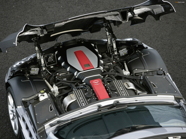 Leistung im Überfluss und Hightech aus dem Motorsport - das waren die kennzeichnenden Charakterzüge des 460 kW (626 PS) starken V8-Motors im SLR McLaren. Damit passte der erste von Mercedes‑Benz AMG komplett entwickelte Achtzylindermotor perfekt in das Hochleistungskonzept des neuen Gran Turismo. Schon ab 1500/min stellte das SLR-Triebwerk ein Drehmoment von mehr als 600 Newtonmetern bereit; das Maximum von 780 Newtonmetern stand schließlich ab 3250/min zur Verfügung und blieb in einem breiten Drehzahlbereich bis 5000/min konstant. Der Spurt von 0 auf 100 km/h erfolgte in 3,8 Sekunden, die Höchstgeschwindigkeit lag bei 334 km/h.