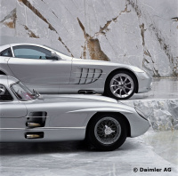 Mit dem im Jahr 2004 erscheinenden Mercedes-Benz SLR McLaren dokumentierten die Stuttgarter Automobilmarke und ihr damaliger Formel-1-Partner McLaren ihre langjährige Erfahrung bei der Entwicklung und Produktion von Hochleistungs-Sportwagen. Der Zweisitzer mit den markanten Flügeltüren und Stilelementen der Formel-1-Silberpfeile setzte den Mythos der legendären SLR-Rennsportwagen aus den 1950er Jahren fort. Ausgestattet mit modernster Rennwagentechnik und wegweisenden Mercedes-Benz Neuentwicklungen für ein hohes Maß an Sicherheit und Alltagstauglichkeit profilierte sich der neue SLR McLaren als Gran Turismo des 21. Jahrhunderts - als eine faszinierende Synthese aus Mythos und Innovation.