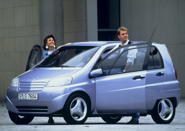 Einen ersten Ausblick auf die künftige A-Klasse gibt Mercedes-Benz auf der Internationalen Automobil-Ausstellung (IAA) des Jahres 1993: Die Marke präsentiert die seriennahe Studie „Vision A 93“. Das Fahrzeug mit Frontantrieb erregt Aufsehen. Denn es zeigt eindrucksvoll, wie Mercedes-Benz erstmals einen klassischen Zielkonflikt der Automobilentwicklung auflöst: Die A-Klasse vereint kleine Außenabmessungen, großen und variablen Innenraum sowie ein Sicherheitsniveau nach dem hohen Standard der Marke in einem einzigartigen Gesamtkonzept. Deshalb ist der „Vision A 93“ weit mehr als eine reine Design- oder Technikstudie. Er weist der Marke vielmehr den Weg in ein bisher nicht definiertes Marktsegment. So beeinflusst er entscheidend die Entwicklung der zukünftigen Mercedes-Benz A-Klasse (W 168).