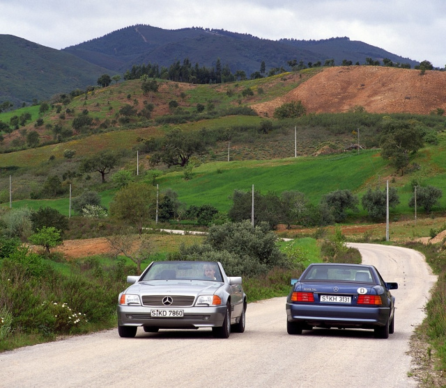 Spitzenmodell ist der 500 SL mit seinem V8-Motor M 119 (240 kW/326 PS bei 5500/min). Die Höchstgeschwindigkeit des bei seiner Präsentation leistungsstärksten Mercedes-Benz Pkw wird bei 250 km/h elektronisch abgeregelt. Als neues Topmodell folgt im Jahr 1992 der 600 SL (später SL 600, 290 kW/394 PS bei 5200/min). 1993 werden die beiden Dreiliter-Typen von den neuen Modellen SL 280 (142 kW/193 PS bei 5500/min) und SL 320 (170 kW/231 PS bei 5600/min) abgelöst, während AMG den SL 60 AMG (280 kW/381 PS bei 5500/min) vorstellt.
