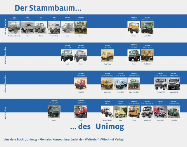 Im März 1946 erfand der Gaggenauer Hans Zabel, von Anfang an im Projekt dabei, den Begriff Unimog (Universal-Motor-Gerät). Aus dem „motorgetriebenen Universalgerät für die Landwirtschaft“ war bis zum Jahr 1954 bereits ein Fahrzeug geworden, das mit 66 unterschiedlichen landwirtschaftlichen Geräten ausgestattet werden konnte. Im Lauf der Unimog- Geschichte - 1951 hat die damalige Daimler-Benz AG den Unimog in die Nutzfahrzeugproduktion in Gaggenau aufgenommen - waren Wandel und technische Weiterentwicklung ständige Begleiter. 30 Baureihen und rund 340 000 abgesetzte Einheiten sind bis heute entstanden. Kein anderes Nutzfahrzeug der Welt kann sowohl als Traktor, Zugmaschine, Lkw, Feuerwehr- und Explorationsfahrzeug, Omnibus und Arbeitsmaschine eingesetzt werden.