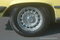 Das Cabrio rollt auf 6,5x14" Barockfelgen von Fuchs und ultra teuren Reifen von Michelin XWX 205/70 R14 W. Es sind selbstverständlich (inklusive vollwertigem Reserverad) fünf dieser Räder am oder im Auto. Der Wagen strahlt auch nach 42 Jahren geradezu wie eine Sonne die Qualität aus, die Daimler so berühmt gemacht hat.