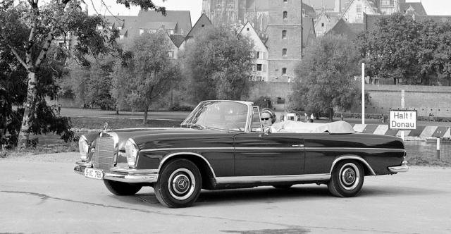 Großes Aufsehen im August 1961: Das 220 SEb Cabriolet erblickt das Licht der Welt! Ein Fahrzeug, das bis auf das fehlende Dach mehr oder weniger dem zughörigen Coupé entsprach. Ein halbes Jahr später debütierten dann die Typen 300 SE Coupé und 300 SE Cabriolet. Ein 3,0-l-Leichtmetallmotor, 4-Gang-Automatikgetriebe, Servolenkung, Luftfederung sowie eine Zweikreisbremsanlage mit Scheibenbremsen an Vorder- und Hinterrädern gehörten zur Grundausstattung. Abgerundet wurde das äußere Erscheinungsbild durch ordentlich Chrom: Von den Scheinwerfern bis zu den Heckleuchten durchgehende Chromleiste in der Längssicke sowie ausgeprägte Zierleisten an den vorderen und hinteren Radläufen ließen das „S-Klasse Cabriolet“ strahlen.