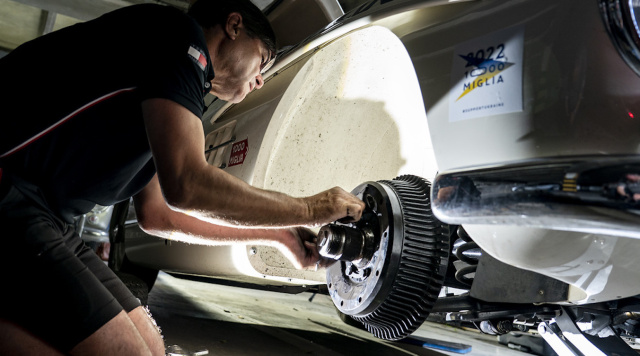 Die stillen Stars der Mille Miglia sind daher nicht die klassikaffinen Piloten, die historische Rennwagen wie Alfa Romeo 6C 1750, Aston Martin DB2, Porsche 356, Mercedes 300 SL, BMW 328, einen spektakulären Bugatti T37 oder O.N. 665 pilotieren. Es sind die Mechaniker, die eine Mille Miglia erst möglich machen. Dabei geht es nicht allein darum, die Fahrzeuge in wochenlanger Arbeit akribisch auf den Renneinsatz vorzubereiten, sondern eben auch dafür zu sorgen, dass die Klassiker nach harten Etappenritten wohl behalten am Samstagnachmittag den Zieleinlauf in Brescia erleben können. Einst schaffte Rekordsieger Stirling Moss in seinem legendären Mercedes 300 SLR die mehr als 1.600 Kilometer in kaum mehr als zehn Stunden – heute sind die Hobbypiloten an vier Tagen unterwegs und sind beim Zieleinlauf in Brescia trotzdem ebenso ausgelaugt wie glücklich.