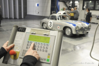 Folgendes Programm ist vorgesehen: Die cW-Werte werden als 10-Punkt-Messungen jeweils mit Anblasgeschwindigkeiten von 130 km/h und 200 km/h aufgenommen. Darüber hinaus werden die Fahrzeugstirnfläche (A) sowie Vorderachs(cAV)- und Hinterachs(cAH)-Auftriebsbeiwerte ermittelt. Dieser Tag wird spannend werden. Schon bei der ersten Messung des Typ 300 S schwirren die unterschiedlichsten Werte als Mutmaßungen durch die Halle - durchweg hohe Schätzwerte aufgrund des Fahrzeug-Designs, das eine vergleichsweise große Fläche gegen den Wind stellt. Der Wert der Stirnfläche von 2,28 Quadratmetern des 300 S, ermittelt mit Außenspiegel, sorgt somit noch für keine Überraschung. Dass dann kein Schätzwert zutreffen wird, ahnt niemand. Konzentration herrscht auf der Kommandobrücke des Windkanals.