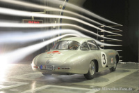 Der Rennsportwagen 300 SL (W 194) hat einen Luftwiderstandsbeiwert von cW = 0,376. Damit liegt er um rund 20 Prozent und damit sehr deutlich besser als das zeitgenössische Vergleichsfahrzeug, der Typ 300 S (W 188), für den sich der Wert cW = 0,462 ergibt. Dieses Resultat unterstreicht die Bemühungen der damaligen Konstrukteure und Designer für einen geringen Luftwiderstand des Rennsportwagens als eine wichtige Voraussetzung für dessen Rennerfolge - die der Wagen im Verlauf der Saison 1952 bei diversen internationalen Motorsportveranstaltungen dann ja auch holt, beispielsweise in Le Mans oder bei der Carrera Panamericana Mexiko. Für den Seriensportwagen 300 SL (W 198 I) wird im Windkanal der Wert cW = 0,389 ermittelt.