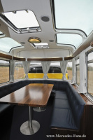 Der Auflieger wurde komplett aus Leichtmetall gefertigt. Wie schon das Fahrerhaus bauten die Staufen Fahrzeugwerke Eislingen auch den vom Regensburger Diplom-Ingenieur Branekar konzipierten Auflieger, der mit seinen 12 Metern Länge und 2,5 Meter Breite Platz für einen Konferenz- und Sitzungsraum, einen Büroraum mit kleiner Küche sowie ein Kundenbereich mit Theke Platz bot.