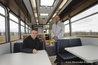 Nachdem der Motor bereits im November 2010 eingebaut war und schon wiederbelebt wurde, konnte im Mai 2011 endlich auch die Fahrerkabine auf das Fahrgestell. Bei dem Auflieger der ADAC Betreuungswagens konnte man nun mit der technischen Ausrüstung beginnen und schließlich die Inneneinrichtung einbauen, bevor der Zug zur TÜV-Abnahme rollte.
