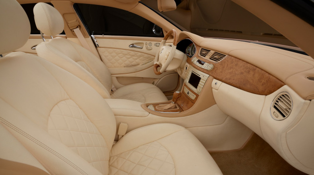 Neben dem Außendesign machte der CLS insbesondere durch das luxuriöse Innere mit einer entsprechenden Serienausstattung von sich reden. So bot bereits die Basisvariante Details wie Teillederausstattung, Edelholz, Alufelgen oder Klimaautomatik. Auf Wunsch gab es Xenonscheinwerfer, klimatisierte Massagesitze, Xenonlicht und offenporige Hölzer, die das abweichend von der E-Klasse gestylte Armaturenbrett völlig anders aussehen ließ. Die besonders beliebten Achtzylinder hatten die zweifelhafte Hightechbremse SBC und eine serienmäßige Luftfederung als nennenswertes Komfortplus.