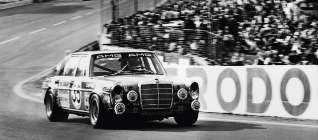 Völlig überraschend beendet der Mercedes-Benz 300 SEL 6.8 AMG mit Hans Heyer und Clemens Schickentanz das 24-Stunden-Rennen von Spa-Francorchamps auf Platz zwei. Der wegen seinem Äußeren (Farbe & Auftritt) schnell den Spitznamen "Rote Sau" genannte Mercedes 300 SEL kam mit einem von 6,3 auf 6,8 Liter aufgebohrten V8 Motor.