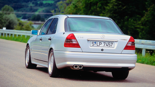 Der 1993 vorgestellte Mercedes C 36 AMG war das erste, auf Basis des Kooperationsvertrages zwischen der Daimler-Benz AG und AMG, gemeinsam entwickelte Fahrzeug. Basis war der C 280 (W202) und als Triebwerk kam der M104-Reihensechszylinder ins Spiel. Als der C36 im September 1993 dann die Showrooms adelte, hatten die AMG-Techniker dem Vierventiler aus jetzt 3,6 Liter stramme 280 PS entlockt. Basispreis: 95.450 D-Mark. Sportliche Eleganz prägte den C36, der gemessen am heutigen Auftritt der AMG-Modelle optisch eher recht zurückhaltend auftrat. AMG-Fans erkannten den obligatorisch mit einer Vierstufen-Automatik ausgestatteten C36 nicht nur am kernigen Sound seines Doppelrohrauspuffs, sondern auch an den 17"-AMG-Leichtmetallrädern, dem noch einmal abgesenkten AMG-Sportfahrwerk und an der agressiveren Frontschürze. 1997 stellte sich mit dem C43 der Nachfolger vor. Mit Achtzylinder.