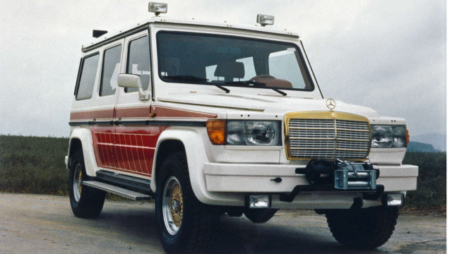Zahlreiche G-Modelle wurden seinerzeit von AMG mit Limousinen-Kühlergrills und Scheinwerfern - wie hier vom W126 - "verschönert". Bunte Dekorstreifen an der Flanke und ein Kühlergrill aus dem W123-PKW-Programm? Das Tuning der Achtziger Jahre hatte fraglos einen ganz besonderen Charme. In der Rückschau mag man manchmal darüber schmunzeln, andere dürfen mit Stolz auf ihre Wurzeln blicken. Auch bei dem hier gezeigten AMG 280 GE waren die Affalterbacher Vorreiter. Und das nicht nur bei der Motorisierung. Hinter dem gewöhnungsbedürftigem Grill steckt ein 5,0- oder 5.6-l-V8 aus der S-Klasse. Damit eroberte das G-Modell nicht nur das Gelände, sondern weiteres unbekanntes Terrain - die linke Spur auf der Autobahn. So ein Achtzylinderr-G war zwischen 190 - 200 km/h schnell. Natürlich nicht, ohne dass die AMG-Techniker das Fahrwerk angepasst hatten. Wem die 245 oder 300 PS starken (AM)G-Modelle zu heftig waren, der konnte sich auch mit aufgemöbelten AMG-Versionen des G230 oder einer Sechszylinder-Version des AMG 280 GE zufriedengeben. Das Interieur wurde mit Holz und feinstem Leder ausgestattet wie es bis dato auch eher in der S-Klasse vorzufinden war.