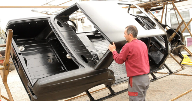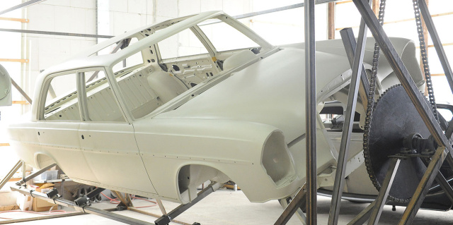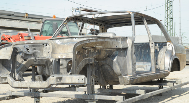 Genau diese Technik hat Schad jetzt auf die Oldtimerkarosserien übertragen. „Mit der Entwicklung einer Konstruktion zum automatischen Rotieren der Oldtimer-Karosserien in den KTL-Becken habe ich das Problem gelöst“, sagt er. Der Unterschied zur Neuwagenmethode besteht in der Drehrichtung. Bei den Neuwagen werden die Fahrzeuge über die Querachse gedreht. Das Rotationsverfahren von Schad erfolgt über die Längsachse.