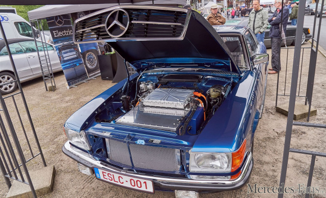 Im letzten Jahr prämierte der eSLC dann auf Europas größtem Mercedes-Festival SCHÖNE STERNE in Hattingen und polarisiert Presse als auch Zuschauer. Sogar das japanische TV war vor Ort um sich ein Bild vom eSLC mit Batterie zu machen.