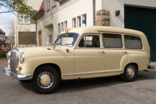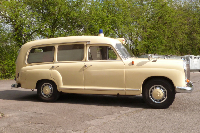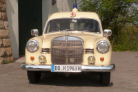 Ein Baby-Benz von 1963 - Irrtum in der Jahreszahl oder? Die Antwort ist ein weißer Krankentransportwagen (KTW) Daimler-Benz Typ 180 Dc auf Pontonbasis von 1963, der immer noch, und das voll ausgestattet, im Ruhrgebiet unterwegs ist. Manch eine Oldtimerveranstaltung kann sich dank seiner Teilnahme rühmen, eine stilgerechte Sanitätsdienstbetreuung einschließlich fachkundigen Personals anzubieten. Schließlich ist der Besitzer und Fahrer promovierter Arzt für Allgemeinmedizin und Arzt im Deutschen Roten Kreuz.
