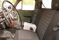 Da wir schon einmal von Behörden redeten, kam er auf das voll funktionsfähige Blaulicht seines Fahrzeugs zu sprechen. Um es ohne Abdeckhülle fahren zu können, so berichtete er, sei eine schriftliche Genehmigung des Regierungspräsidenten mit der Begründung der Erhaltung der Originalität erforderlich. Diese Erlaubnis sei alle fünf Jahre, selbstverständlich gebührenpflichtig, zu erneuern. Allerdings werde sie nur noch für schon seit Längerem in Betrieb befindliche ehemalige Behördenfahrzeuge verlängert. Für neu wieder zugelassene Oldtimer gelte diese Regelung nicht.