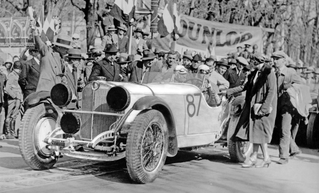 Was für ein Überraschungssieg: Der große und trotz zahlreicher Erleichterungsmaßnahmen immer noch schwere Mercedes-Benz SSKL (W 06 RS) mit Rudolf Caracciola am Steuer gilt gegenüber der italienischen Konkurrenz nicht als Favorit bei der fünften Auflage der Mille Miglia am 12. und 13. April 1931. Doch das Team aus Stuttgart bewältigt die 1.635 Kilometer lange Strecke von Brescia nach Rom und zurück schneller als alle Lokalmatadore: Caracciola und sein Beifahrer Wilhelm Sebastian kommen nach 16 Stunden, 10 Minuten und 10 Sekunden ins Ziel. Die Durchschnittsgeschwindigkeit beträgt 101,6 km/h, allein das ist eine Sensation. Denn kein Fahrer zuvor hat jemals einen Schnitt von mehr als 100 km/h erreicht. Und schließlich ist Caracciola der erste nichtitalienische Fahrer, der die Mille Miglia gewinnt.