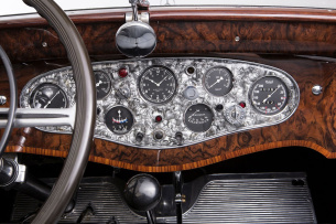 Unser Fotomodell lieferte Mercedes 1931 an den seinerzeit sehr bekannten deutschen Filmschauspieler und Regisseur Erik Charell. 1933 emigrierte Charell in die Vereinigten Staaten. Der Mercedes begleitete ihn. In den darauffolgenden Jahren wechselte der W07 mehrfach den Besitzer, um schließlich 2004 wieder die Heimreise anzutreten. In Deutschland erhielt der Mercedes 770 eine aufwändige Restauration. Nun erstrahlt der “Große“ wieder in voller Schönheit – und zählt damit ganz gewiss stets zu den Top Pokal-Favoriten bei jedem Concours d’Élégance.