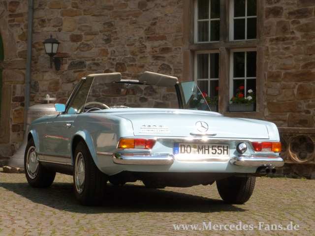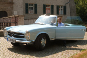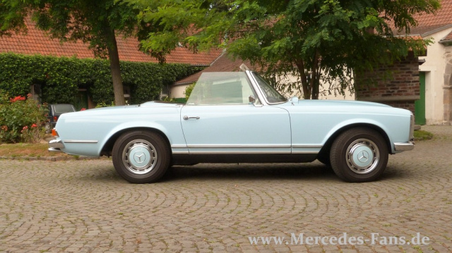 Einer der Ersten dieser Weiterentwicklung gehört heute Matthias Hilgering, ein 280 SL Automatc, erstmalig zugelassen am 23.April 1968. Das Fahrzeug stammt aus erster Hand. Es hatte bei 90 000 km einen Werks-Austauschmotor erhalten und war beim Kauf im Jahr 2001 102 000 km gelaufen. Inzwischen zeigt der Tacho 155 302 km an.