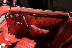 Laut Kilometerzähler hat der 300 SL keine 90.000 Kilometer hinter sich. Schließlich wurde er wohl nur an warmen, französischen Sommertagen gefahren. Der Innenraum mit rotem Leder wirkt belebt aber nicht hoffnungslos verloren. Eine edle Patina gehört bei einem 60 Jahe alten Scheunenfund doch dazu. Genauso wie Lackabplatzer, Dellen, verrostetes Chrom oder matter Lack – ungeschminkt sind diese Narben eben erkennbar. Hinter einem Fahrzeug steckt auch immer eine Geschichte.