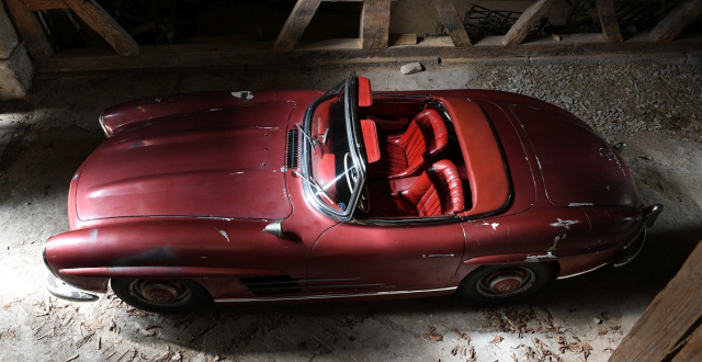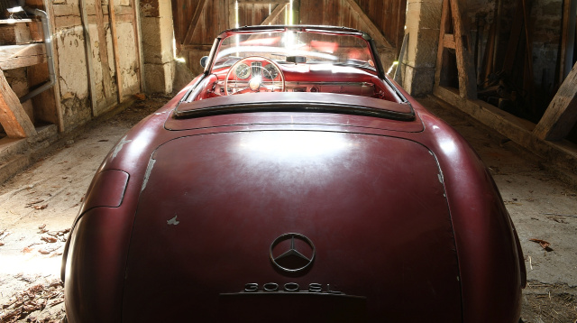 Manchmal muss es eben Glück sein. So auch in diesem Fall. In einer Scheune im wunderschönen Südfrankreich versteckte sich dieser erdbeerrote Mercedes-Benz 300 SL Roadster. Der heutige Besitzer will den Charme des Roadsters beibehalten, lässt ihn unberührt und konserviert ihn. Denn wie ein Mensch auch, kann ein Auto Narben haben, die die Geschichten der vergangenen 60 Jahre erzählen...