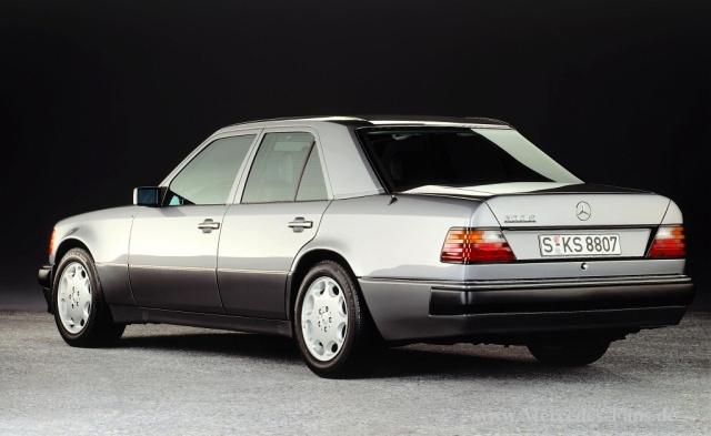 Die kraftvolle Limousine macht die letzte Modellpflege der Baureihe W 124 mit. Die erste Änderung betrifft den Namen: Die mittlere Klasse heißt nun E-Klasse, entsprechend wird ein Buchstabe vorangestellt, und man hat es nunmehr mit dem E 500 zu tun. Die Formensprache des äußeren Designs ist modernisiert, dafür sorgen der Plakette-Kühlergrill, der von der Motorhaube umrahmt in diese eingebettet ist. Geändert wurde bei den Limousinen auch das Heck. Der Kofferraumdeckel und die beiden Kotflügel zeigen nun Kanten mit einem größeren Radius, auch die Fläche um das Nummernschild herum ist modifiziert.
