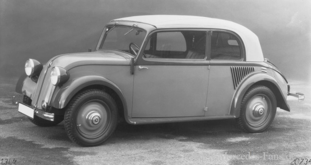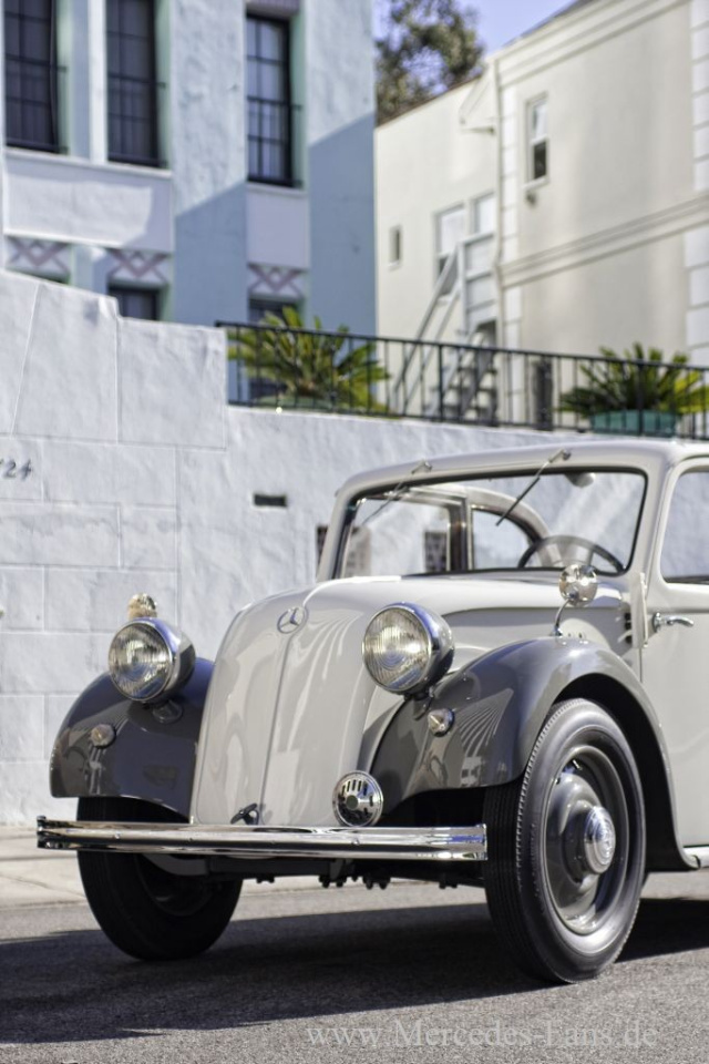 Der neue Typ überrascht emit einem erstaunlich geräumigen Innenraum, nicht viel kleiner als beim Mercedes-Benz 170 mit Sechszylindermotor, dem bis dahin kleinsten Fahrzeug von Daimler-Benz. Die recht große und ungeteilte Windschutzscheibe ließ einen ungehinderten Blick nach draußen zu. Die beiden großen Seitentüren ermöglichten in Verbindung mit den abklappbaren Vordersitzlehnen einen recht guten Zugang zur höher angebrachten Fondsitzbank, hinter deren Lehne noch Raum für einen größeren Koffer war. Unter der vorderen Haube war genügend Platz für das waagerecht liegende Reserverad sowie Werkzeug und kleinere Reiseutensilien. Eine große Ausnahmeerscheinung der damaligen Zeit und von der Damenwelt sehr war die serienmäßige Warmluftheizung.