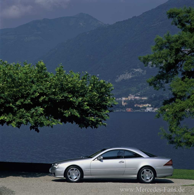 Mercedes-Benz CL. Ein modernes Hybrid-Konzept, das den Einsatz verschiedener Leichtbau-Werkstoffe wie Aluminium, Magnesium, Stahl und Kunststoff ermöglicht, bringt im Vergleich zum Vorgänger eine Gewichtsersparnis von bis zu 340 Kilogramm. Ein besonderes Stück ist der CL 55 AMG F1 Limited Edition, der ab Herbst 2000 in einer auf 55 Stück limitierten Zahl mit betont exklusiver Ausstattung gebaut wird. Er kostet stolze 330 000 DM (umgerechnet rund 168 500 Euro). Pate ist das CL 55 AMG Safety Car, das in der Formel 1 für Sicherheit sorgt. Das Kleinserienpendant ist weltweit das erste Auto mit Straßenzulassung mit einer besonders leistungsfähigen Bremsanlage mit innenbelüfteten Bremsscheiben aus faserverstärkter Keramik. Sie sprechen sensibel an, sind äußerst temperaturbeständig, dauerbelastbar und haben eine längere Lebensdauer. Bei einer Vollbremsung aus Höchstgeschwindigkeit wird eine Bremsleistung von rund 1475 kW erbracht.