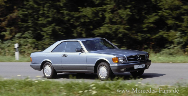 Das elegante Aussehen paart sich bei den Coupés beispielsweise mit exklusiver Ausstattung, leistungsstarken Motoren und bester Sicherheit somit zu einem Erlebnis, das Komfort aus allen Facetten des Automobilbaus heraus bietet: Selbst lange und längste Strecken lassen sich mit dem Coupé mühelos zurücklegen. Dafür sorgen das aufwändige Fahrwerk, das bis auf Detailänderungen der S-Klasse entspricht, das Interieur mit bester Ergonomie und feiner Anmutung in allen Details und auch der Antrieb. Es gibt die Coupés ausschließlich mit Achtzylinder-Motoren. Vom Start weg sind es die Typen 380 SEC und 500 SEC. Die im Jahr 1985 erfolgte Modellpflege ersetzt den 380 SEC durch den Typ 420 SEC, modifiziert den 500 SEC und bringt, als spektakulärste Neuheit, zusätzlich den Typ 560 SEC. Mit der Modellpflege kommen auch Abgasreinigungsanlagen mit geregeltem Katalysator.