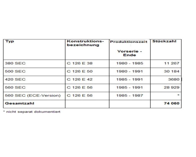 Das Angebot an Coupés mit dem begehrenswerten Kürzel SEC in der Typenbezeichnung ist umfangreich. Zwar sind es mittlerweile durchweg ältere Fahrzeuge, doch gut erhaltene Exemplare sind immer wieder zu finden. Und hohe Laufleistungen sind für die Achtzylindermotoren bei regelmäßiger Wartung auch kein Problem.Doch es gibt ja auch Fahrzeuge mit Herstellergarantie: Mercedes-Benz Young Classics hat immer wieder Autos im Angebot, die in einem überdurchschnittlichen Zustand sind und für die deshalb eine Gewährleistung übernommen wird einzigartig in der Automobilbranche.Wer heute ein Coupé der Baureihe C 126 als Modernen Klassiker fährt, schätzt sicherlich Dinge wie die vollkommene Alltagstauglichkeit, den hohen Fahrkomfort, das elegante Aussehen und die Exklusivität. Ein weiterer Trumpf ist, dass der Wert bei ordnungsgemäßer Wartung und guter Pflege zumindest nicht mehr sinkt, also so gut wie kein Wertverlust mehr stattfindet. In vielen Fällen steigt der Fahrzeugwert sogar über die Jahre. Fast genau zehn Jahre nach der Markteinführung der Coupés der Baureihe C 126 wird die Produktion Ende 1991 eingestellt. Die Gesamtstückzahl von 74 060 gebauten Exemplaren vermittelt einen Eindruck von dem hohen Beliebtheitsgrad der Modellfamilie. Das am häufigsten verkaufte Modell ist der Typ 500 SEC mit 30 184 Exemplaren. Die deutlich seltenste Variante ist der 420 SEC mit nur 3 680 Einheiten. Unabhängig von der Motorisierung ist jeder einzelne eine Legende seiner Epoche.