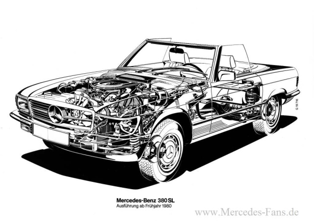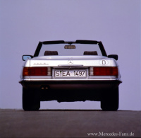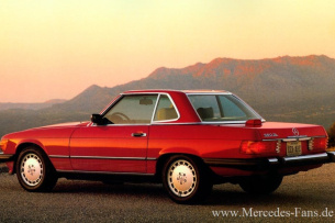 S-Klasse der Baureihe 126, leicht abgewandelt, in der Baureihe 107 Einzug. Unverändert im Programm bleibt der Sechszylindermotor des Typ 280 SLC.